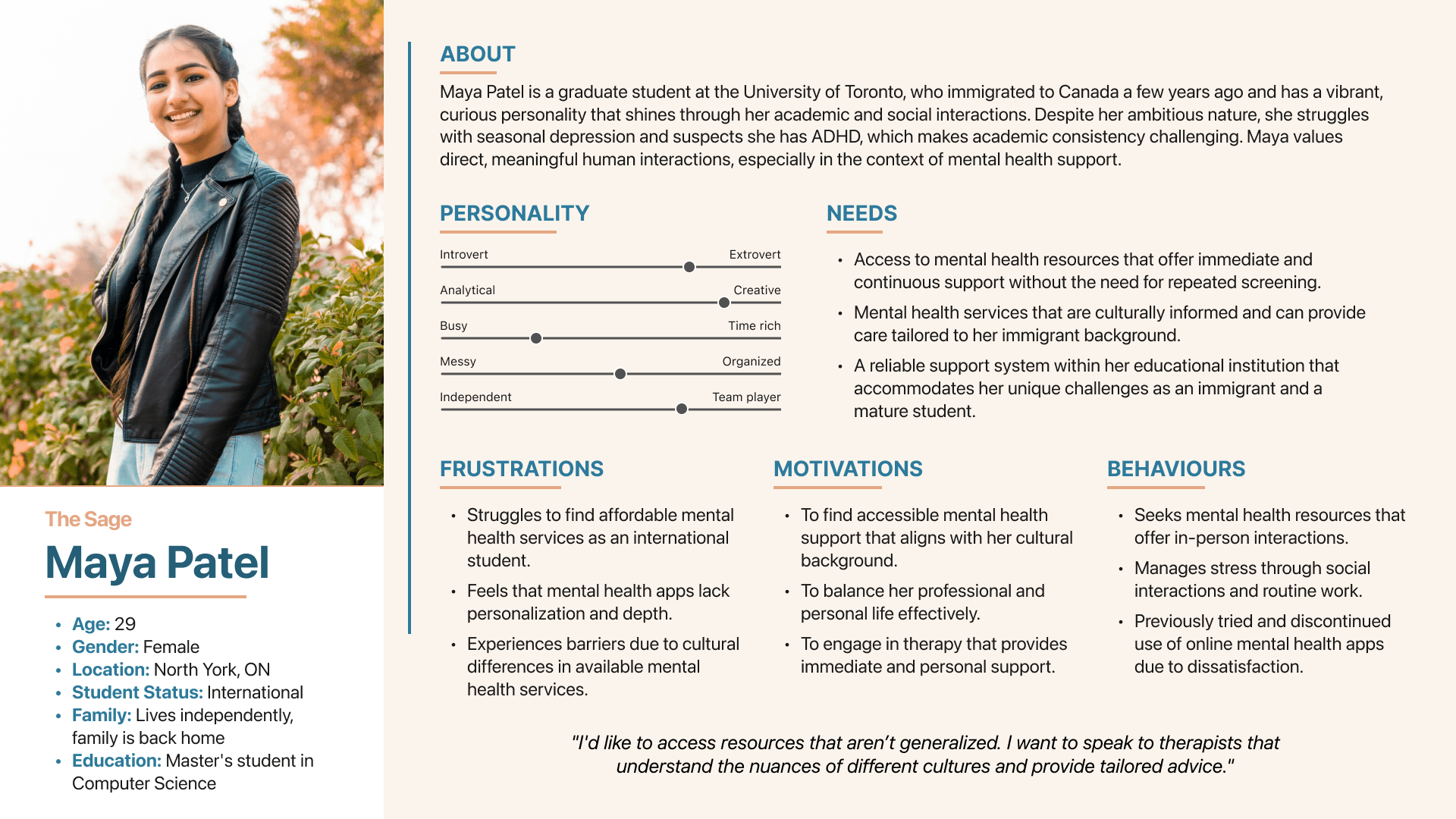 Then I looked at what’s already out there—analyzing digital mental health platforms, apps, and services to understand what was working and where the gaps were.