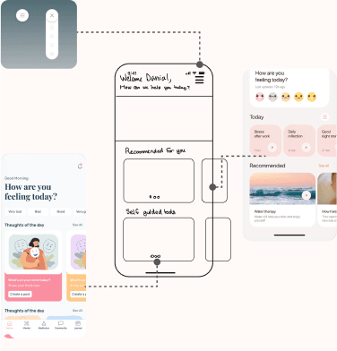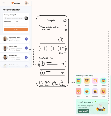 I started with sketches to think through the structure. The focus was on two core tasks: how someone finds a therapist they trust, and how a therapist shows up clearly and professionally.