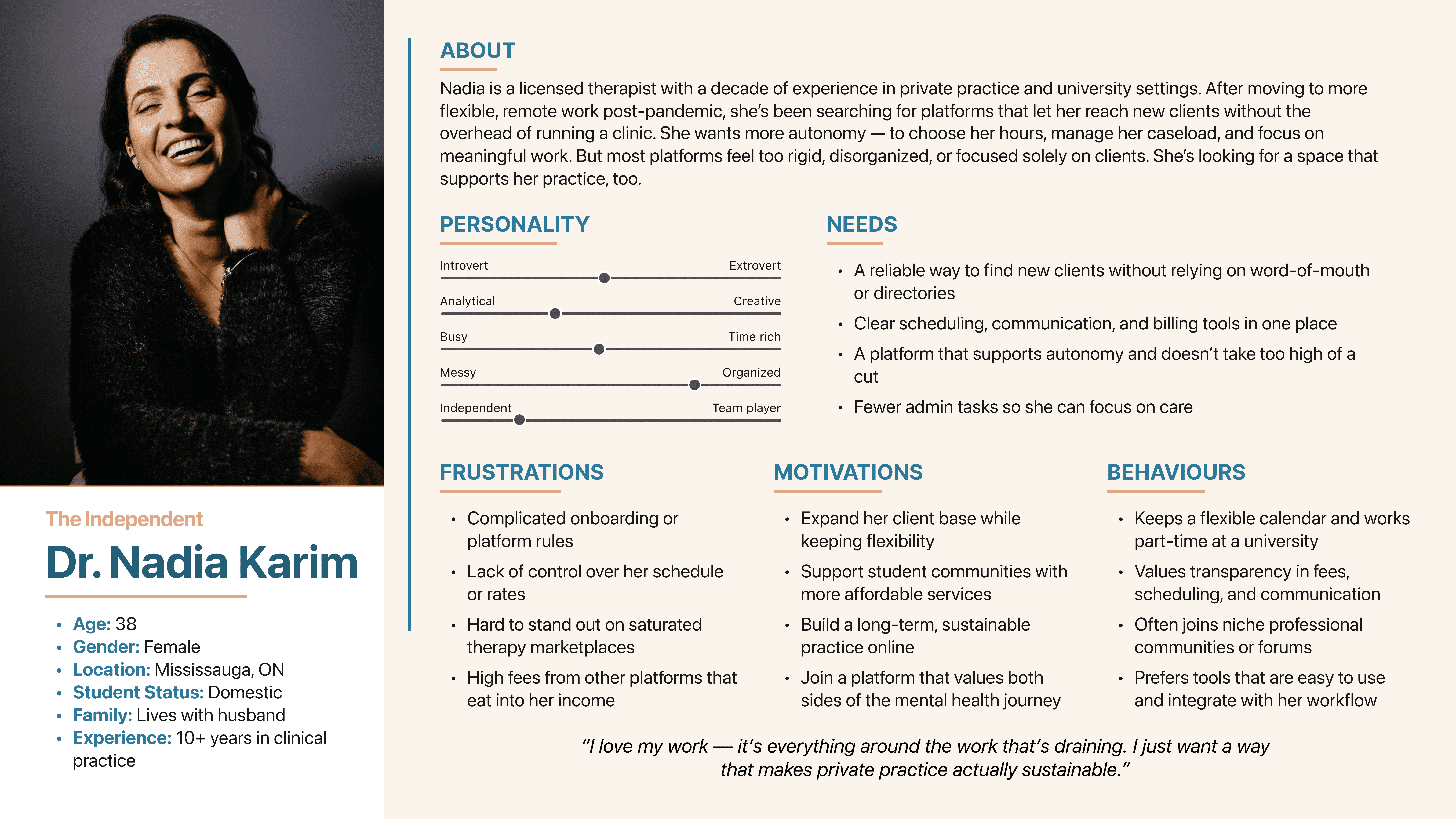 Therapists (especially student residents) are qualified and ready to offer care but face limited pathways to connect with clients. They lack infrastructure, exposure, and safe ways to begin practicing. Their training hours are often bottlenecked by bureaucracy or low visibility.
