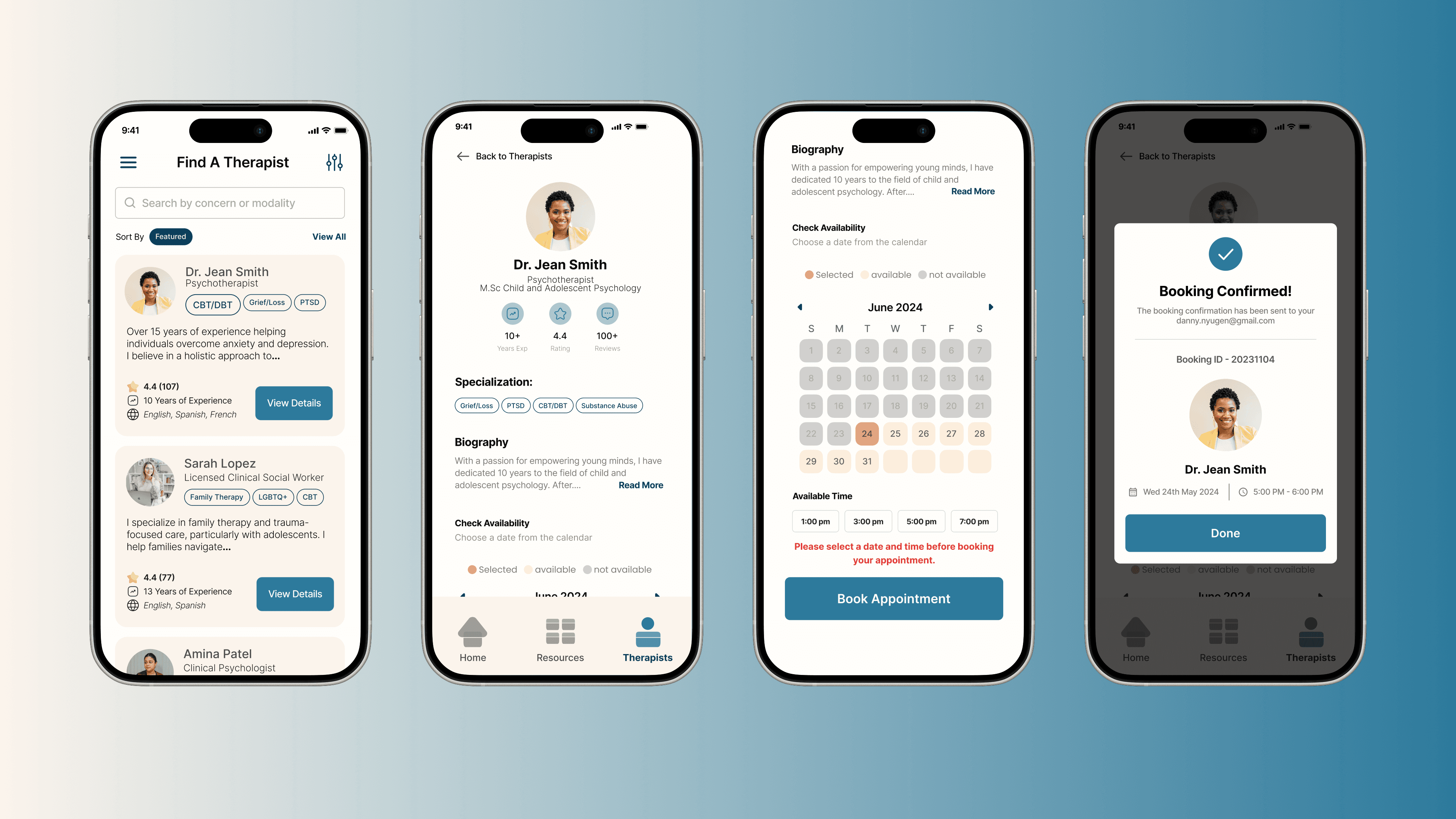Designed and launched the mobile MVP. Got the core booking flow out the door so users could actually start finding and scheduling therapy.