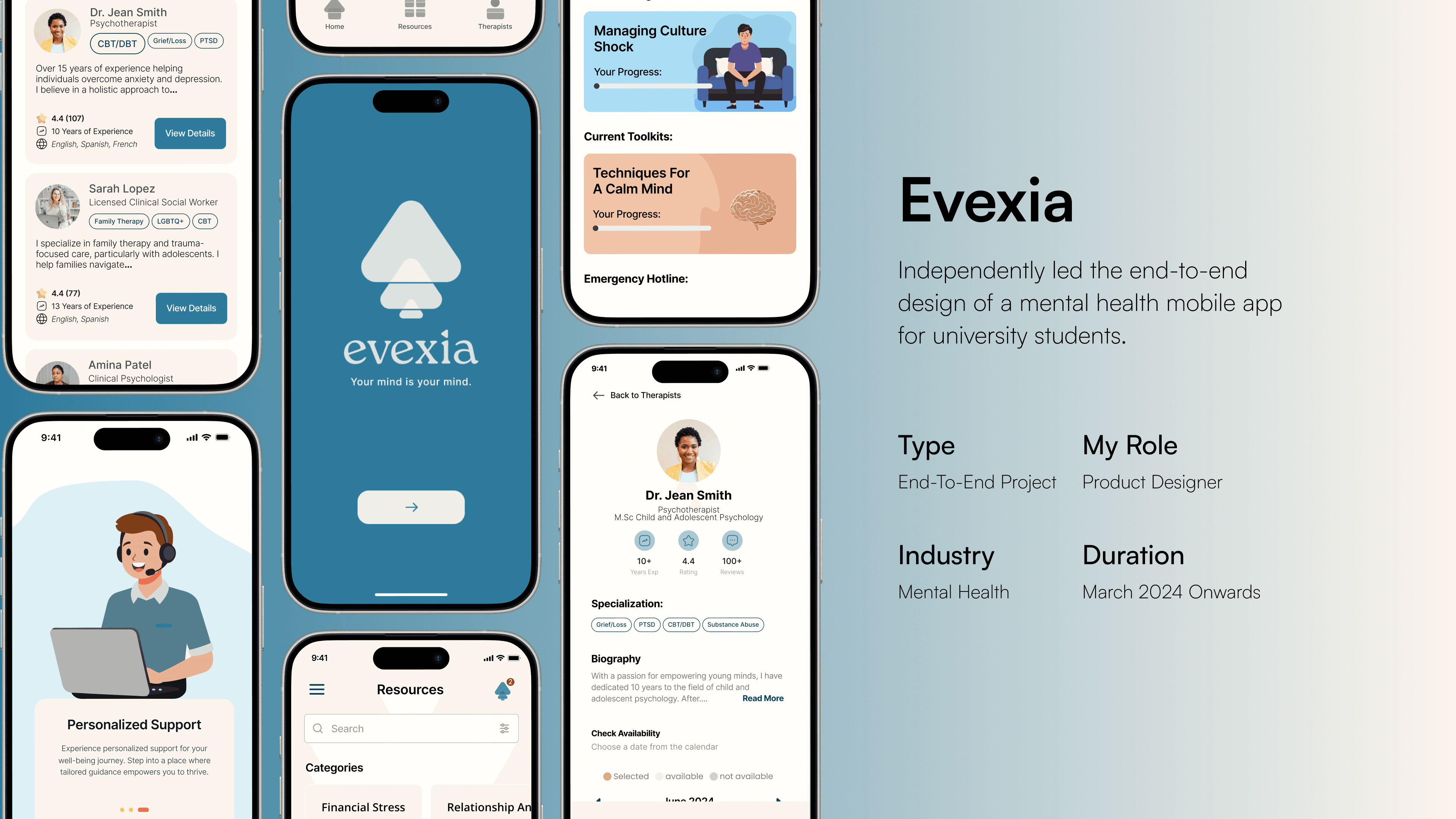 The Evexia team reached out to me with a clear challenge: how can we make the process of finding and booking therapy easier for both clients and therapists — without it feeling like another clunky healthtech tool?